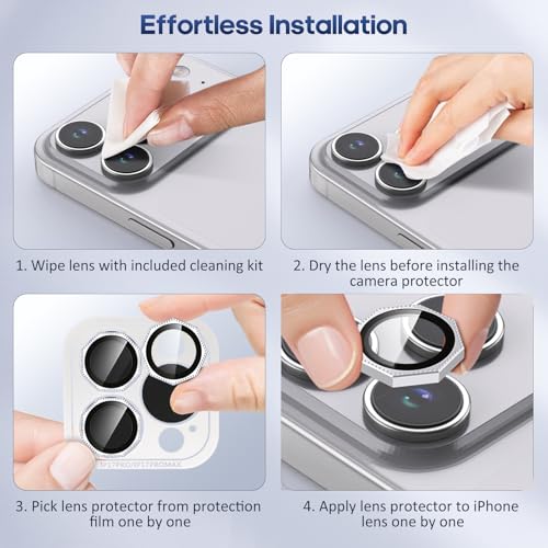 - 【Compatible Model】Xfilm Camera Lens Protector is designed exclusively for iPhone 17 Pro and iPhone 17 Pro Max. Due to the shape of the Nut, please verify the angle before installation to prevent the corners of the lens protectors from interfering with each other, which could make installation impossible.