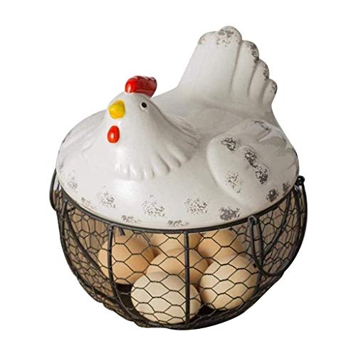 - ★? High quality materials: this wire mesh egg basket is made of durable metal, not easy to deform and rust. Stylish and cute appearance, ceramic top cover, easy to clean and durable. Suitable for modern kitchen lifestyle.