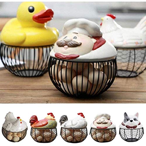- ★? CREATIVE DESIGN A cute animal perched on a wire basket, it is a fun and practical way to store eggs. The humanized design of the egg rack handle allows you to choose and place it not only in the kitchen, but also in the dining room.