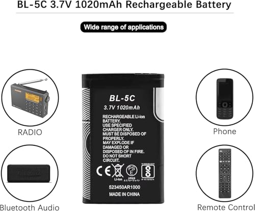 - 【الطراز】BL-5C 1020mAh؛ الجهد: 3.7 فولت؛ جهد الشحن: 4.2 فولت؛ نوع البطارية: أيونات الليثيوم. الأجهزة المتوافقة التي تستخدم بطارية BL-5C، وتستخدم على نطاق واسع للراديو ومكبر الصوت BT والكاميرا.