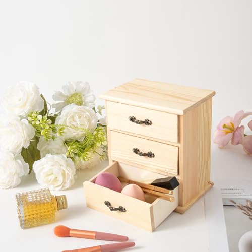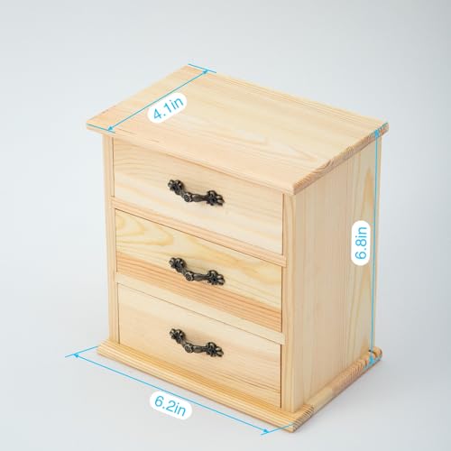 Xhqsulsclac - 3 Pieces Wooden Jewelry Storage Box with 3 Drawers, 6.2 x 4.1 x 6.8 Inches, Pine Organizer DIY Storage Jewelry General Pine Box