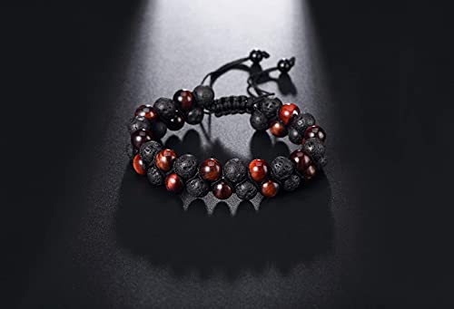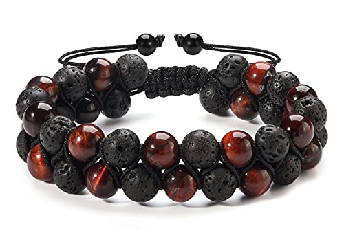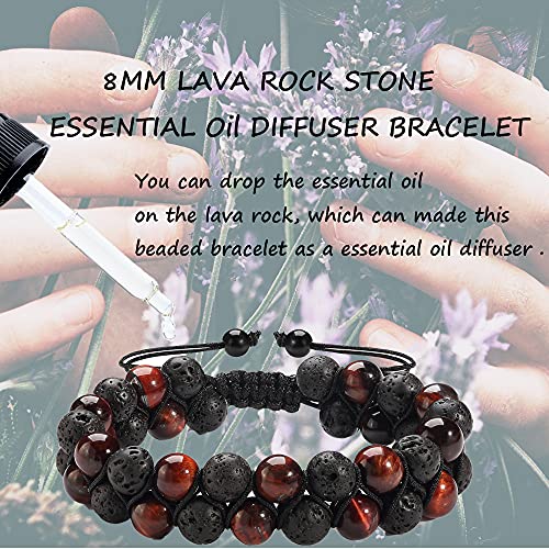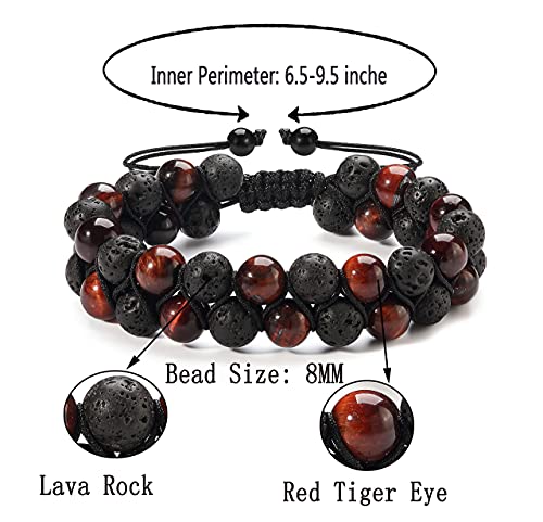 XIANNVXI - XIANNVXI Men Women Red Tiger Eye Lava Rock Stone Beads Bracelet 8mm Double Layer Natural Gemstone Beaded Anxiety Bracelets Adjustable Braid Aromatherapy Essential Oil Diffuser Bracelet
