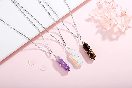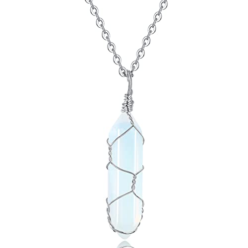 XIANNVXI - XIANNVXI Opal Healing Crystal Stone Necklace Wire Wrapped Gemstone Point Pendant Necklaces Natural Spiritual Reiki Quartz Jewelry for Women Girls