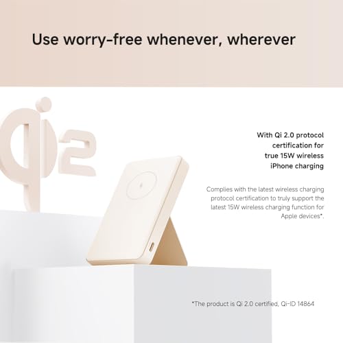 XIAOMI - XIAOMI Magnetic Power Bank 6000mAh – Tan, 15W Super-Fast Wireless & Wired Charging, Built-in Stand, Strong Magnetic Force, Portable, Compact Design