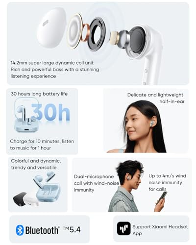 XIAOMI - Xiaomi Redmi Buds 6 Active Wireles Earbuds (Global Version), Bluetooth 5.4 in-Ear Headphones, 30H Long Battery Life,Noise Cancellation for Calls, 5 Tuning Modes, IPX4 Waterproof - White