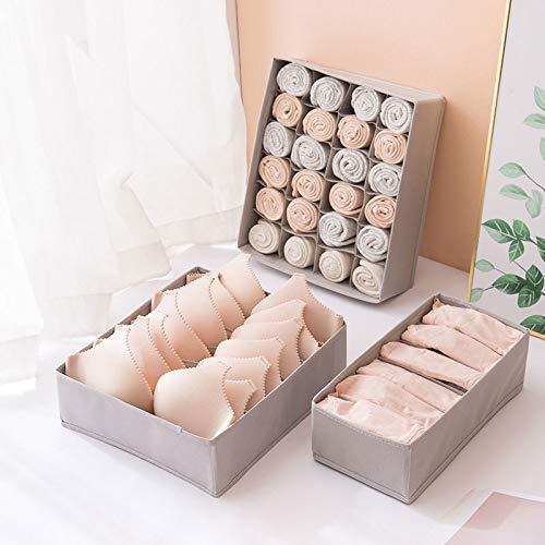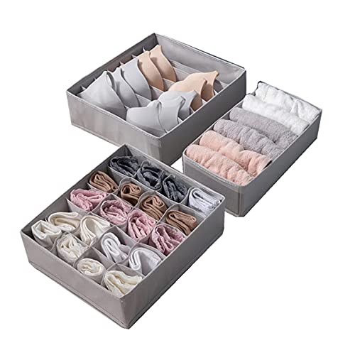 Xicennego - Xicennego Underwear Storage Box Set Drawer Divider, Underwear, Bra, Socks, Tie Storage Box-3 Sets(Grey)