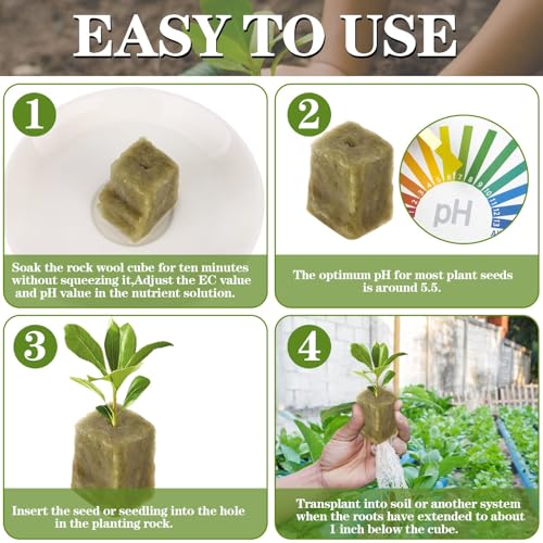 - 【استخدام واسع النطاق】تتميز مكعبات استنبات الصوف الصخري بترطيب جيد وفتحة زراعة يدوية، وتستخدم على نطاق واسع في الزراعة المائية بدءًا من رمي البذور والتجذير وتكاثر النباتات وأنظمة الاستنساخ وما إلى ذلك. مريحة جدًا أفضل من البدء مع التربة، فهي رائعة لعشاق الزراعة والمزارعين التجاريين.