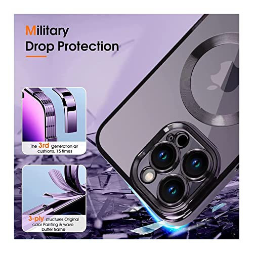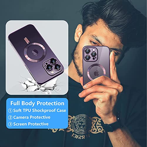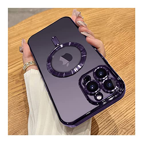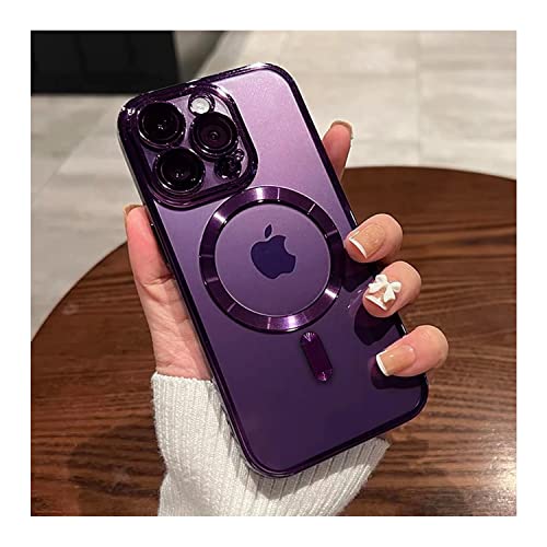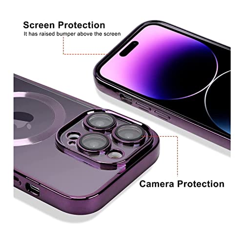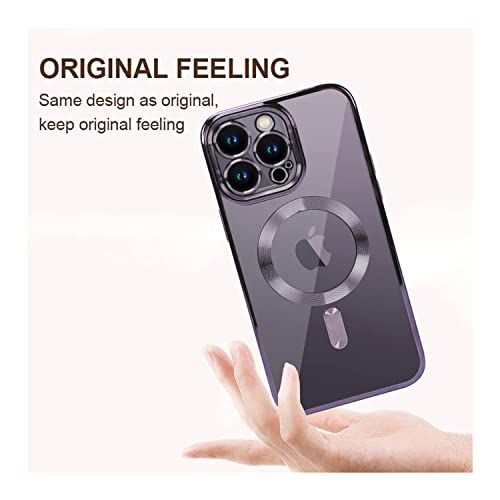 XIEHUZA - Magnetic Case for iPhone 14 Pro Max, Clear Phone Case [Compatible with MagSafe] with Camera Lens Protector Anti-Scratch Slim Electroplated iPhone 14 Pro Max Case for Women Men (Purple)
