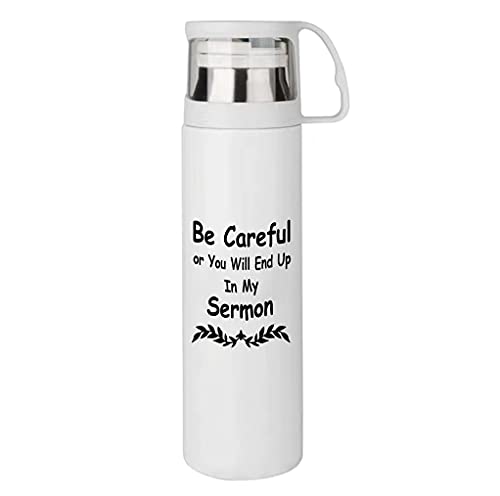 XiErSi - Funny Coffee Thermos Cup - Be Careful or You'll End Up In My Sermon - Best Pastor Appreciation Gifts for Birthday or Christmas and Anniversary Minister Gift for Men and Women 14 oz