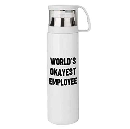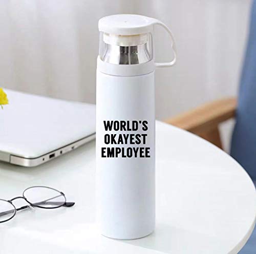 XiErSi - Funny Coffee Thermos Cup - World's Okayest Employee - Novelty Office Gifts for Men Women Work Humor Employee Boss Coworkers 14 oz