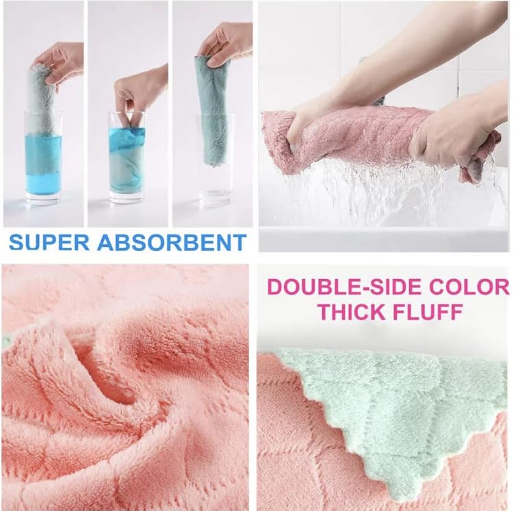 - [متعددة الاستخدامات وخالية من الوبر من الفرو الناعم] – بفضل نعومتها وامتصاصها الفائق، توفر مادة كورال فيلفيت السميكة والناعمة غير الكاشطة المصنوعة منها قطع قماش التنظيف الميكروفايبر قدرة فائقة على الامتصاص بدون وبر وملمس ناعم. استخدمها لتجفيف الأكواب الخفيفة والأطباق الرقيقة، أو حتى أسوأ الانسكابات، وستندهش من قدرتها المذهلة على الامتصاص وخلوها من الوبر مما يجعل الأكواب والأطباق أكثر نظافة ولمعانًا.