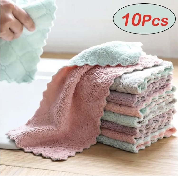 XieXie - قطع قماش للتنظيف ميكروفايبر فائقة الجودة للمطبخ قابلة لإعادة الاستخدام، فوط تنظيف الأطباق فائقة الامتصاص من قماش كورال فيلفيت، فوط لفناجين شاي ناعمة سريعة الجفاف من شيكسي®، 10 قطع (متعدد الألوان)