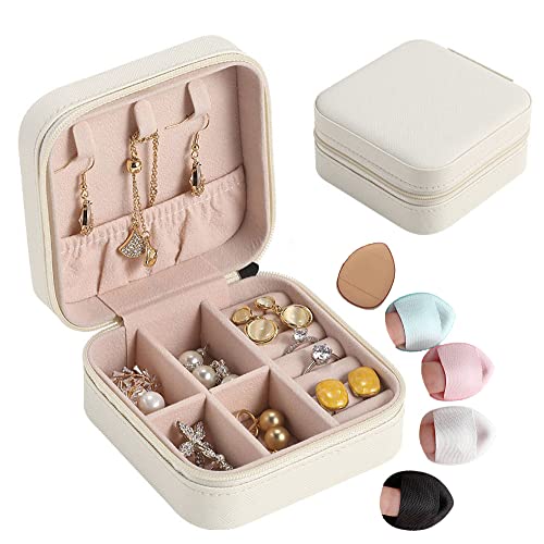 XiFiMak - Small Travel Jewelry Box Organizer Display Case for Girls Women Gift Rings Earrings Necklaces Storage (Pearl White)