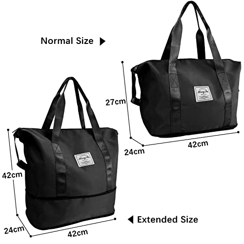 XINGYATU - XIGNYATU Weekend Bag for Women, 35L Large Travel Duffel Bag, Dry and Wet Seperated Overnight Bag, Holdall Bags, Waterproof Gym Bag, Sports Bag with Shoe Pouch(Purple), Black