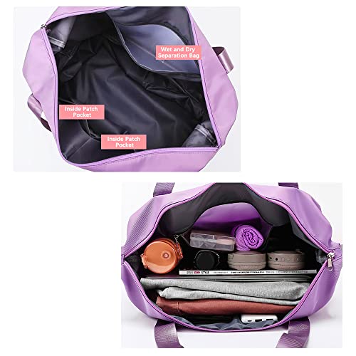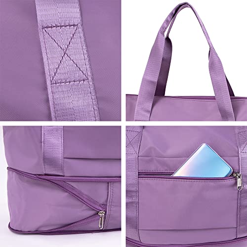 Xingyatu - XIGNYATU Weekend Bag for Women, 35L Large Travel Duffel Bag, Dry and Wet Seperated Overnight Bag, Holdall Bags, Waterproof Gym Bag, Sports Bag with Shoe Pouch(Purple), Purple