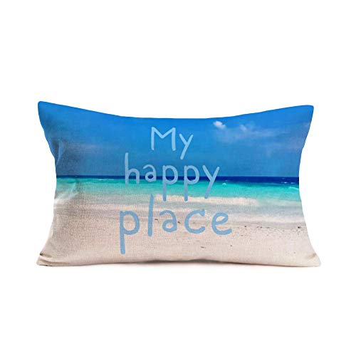 Xihomeli - Xihomeli Cotton Linen 12x20 Inch Throw Pillow Covers My Happy Place Quote Words Blue Sea Ocean Beach Background Cushion Case Cool Summer Style Pillowcase Decor (Happy Place)