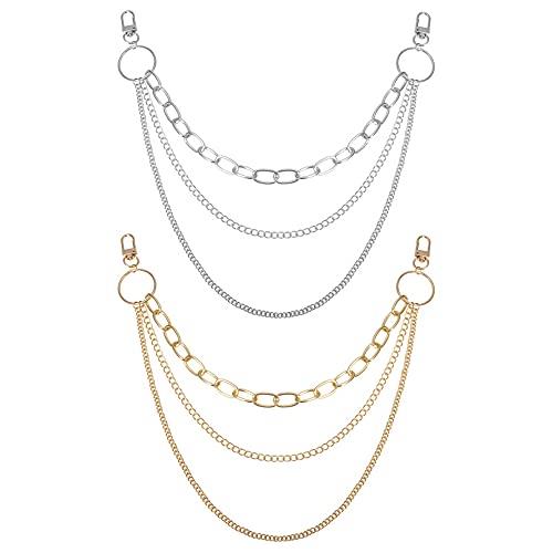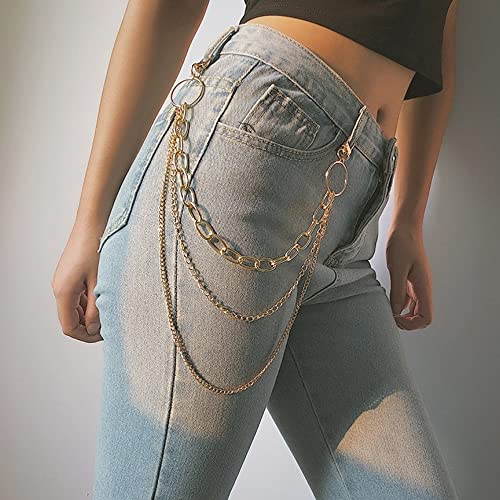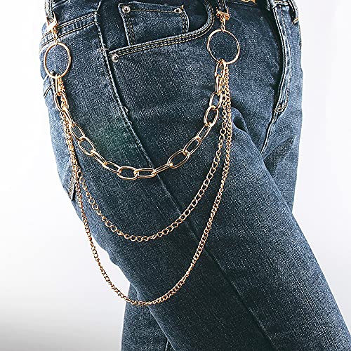 Xihuimay - Xihuimay 2pcs Pants Jeans Gothic Punk Rock Chain Pocket Belt Chains Multi-layer Wallet Chain Trousers Skirt Waist Chain Keychain for Key Belt Loop Purse Handbag for Women Men, Gold Silver