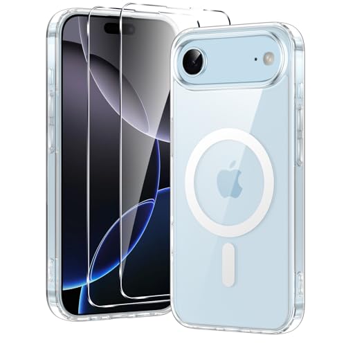 Xiltlly - جراب مغناطيسي من زيلتلي لهاتف ايفون اير مع 2 زجاج مقسى، متوافق مع ماج سيف لموبايل ايفون 17 اير، جراب ممتص للصدمات نحيف ومتين من البولي يوريثين الحراري