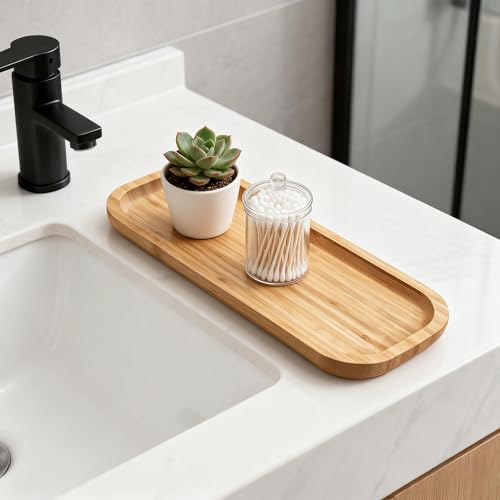 XIMISISE - Bamboo Vanity Tray, Bathroom Counter Tray, Toilet Tank Tray, Bathroom Tray for Organizing and Home Decor, 14.2 x 6 x 0.8 inch