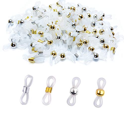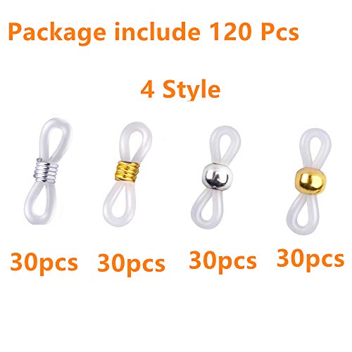 Xinhongo - 120 Pieces Eyeglass Chain Ends Adjustable Rubber Spectacle End Connectors Anti-Slip Ends Retainer Eyeglass Strap Holder Loop,4 Style,30pcs/style(White)