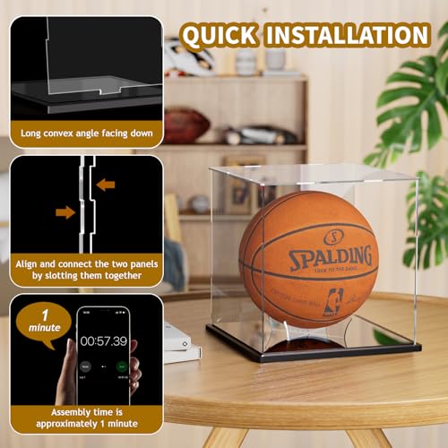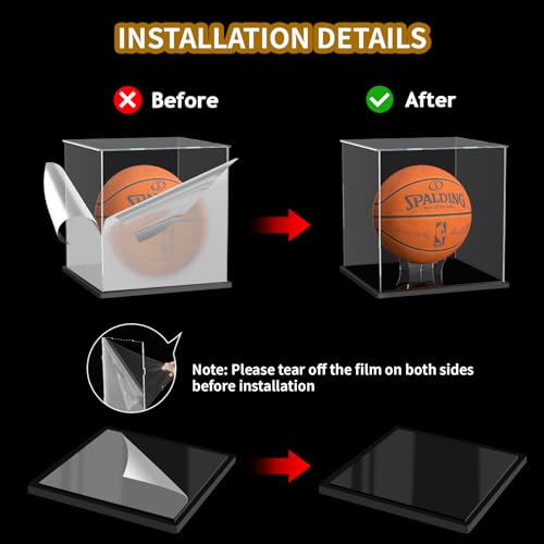 - Upgraded Dustproof Slot Design: Our basketball display case is super convenient to assemble! No need to press pins or tools, just align the slot and gently spell it out, the whole process only takes 1-2 minutes, saving time and effort. Before assembly, make sure to peel off the protective film for an ultra-clear acrylic display