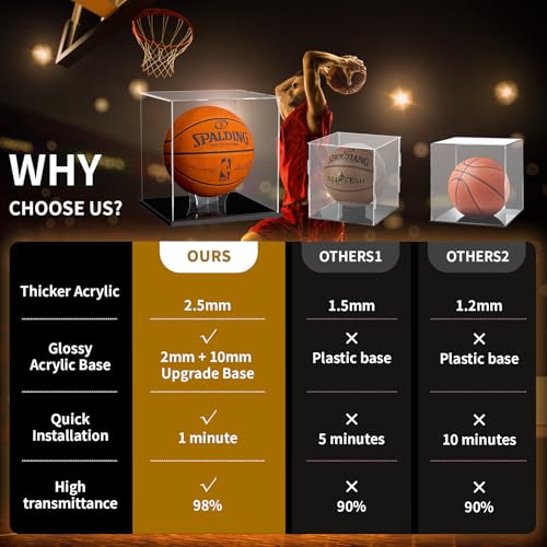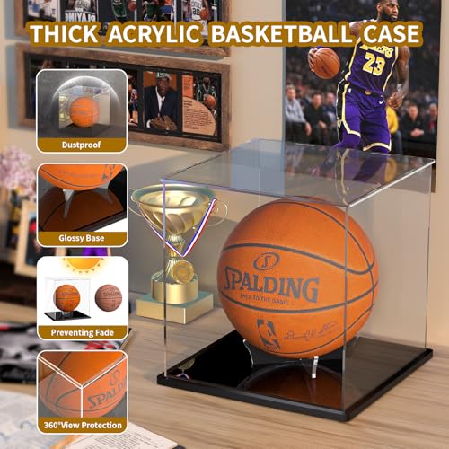 - Thickened Quality Acrylic: Crafted from 2.5mm thick acrylic, this basketball case display is stronger and more durable than the common 1.5mm sheet on the market. It’s designed to be dustproof, and crack-resistant, ensuring long-term protection for your soccer ball display case, volleyball display case, or basketball