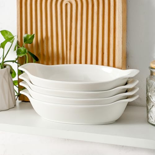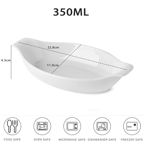 XINLTC - Ceramic Casserole Dish, 350 ml, Lasagne Casserole Dish for 1 Person, White Oven Baking Mould, Ideal for Casseroles, Cobblers, Tiramisu, Microwave and Dishwasher Safe, 22.8 x 11.9 x 4.3 cm, Set