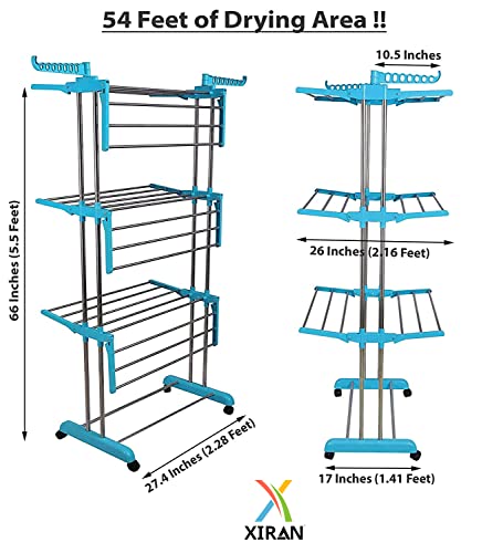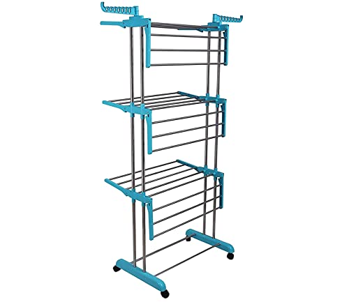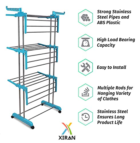 Xiran - Stainless Steel Cloth Drying Stand, Cloth Hanger Stand for Drying Clothes Foldable Clothes Dryer, Cloth Hanging Stand, Cloth Drying Stand for Balcony, Home, Indoor, Outdoor (Cyan Blue)