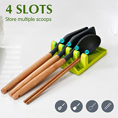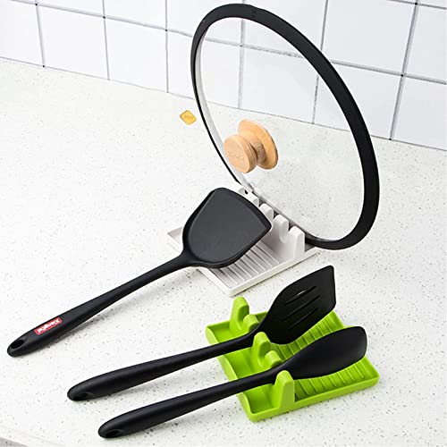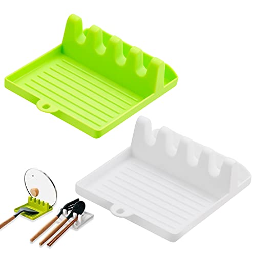 Spaceshoop - صواني معالق من اكسيوميزو، غير قابلة للانزلاق، خالية من مادة البيسفنول ا، متعددة الوظائف، لادوات المائدة، للفرشاة، لاواني المطبخ ولغطاء الوعاء، مقاومة للانزلاق وللحرارة، اخضر وابيض، قطعتان