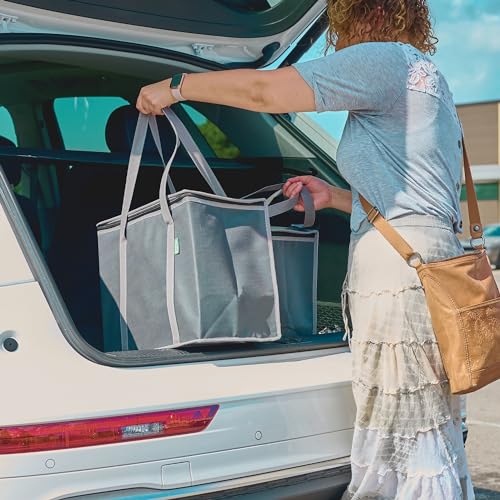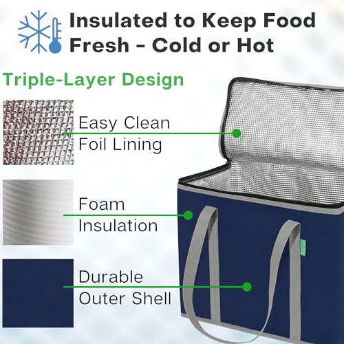 Creative Green Life - XL Insulated Reusable Grocery Bags (2-Pack) - Premium Quality Cooler Bags with Hard Bottom Insert, Stands Upright, Washable