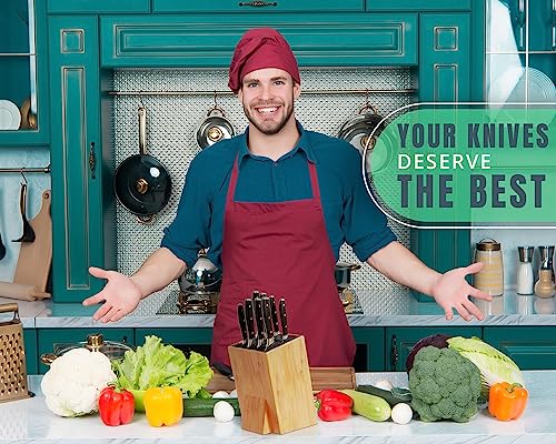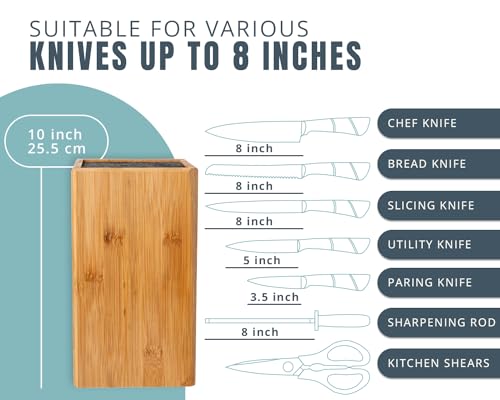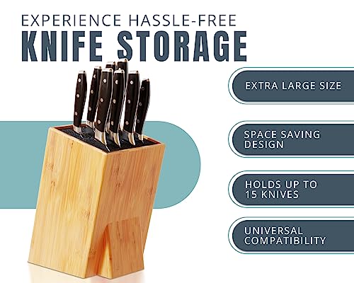 Comfify - حامل سكاكين عالمي كبير مقاس اكس لارج XL بدون سكاكين - حامل سكاكين من الخيزران مع شعيرات قابلة للإزالة - مريح ومتعدد الاستخدامات لأي حجم سكين