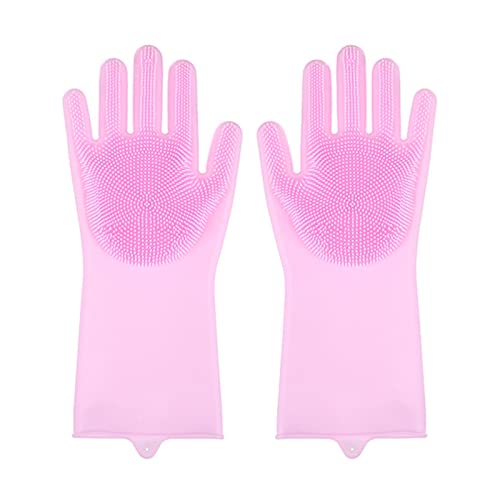 Generic - قفازات أسفنجية من اللاتكس من شيمينغوي، قفازات أسفنجية لتنظيف الأطباق قابلة لإعادة الاستخدام من السيليكون، قفازات تنظيف منزلية للمطبخ والحمام (اللون: وردي)