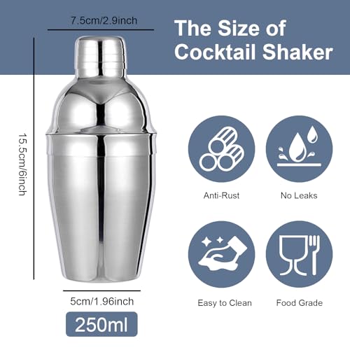 Xnqelerate - 6-Piece Cocktail Shaker, 250 ml Shaker Stainless Steel, Bar Cocktail Shaker with Integrated Strainer, Martini Shaker for Bartender and Home Cocktail Lovers, Cocktail Shaker Sets Gifts