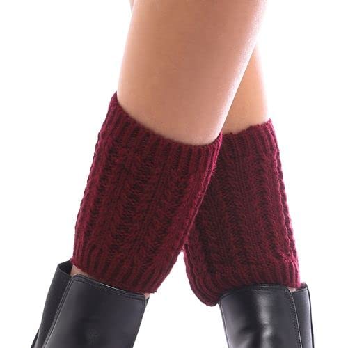 Generic - Xo Style Cuffs Winter Short Crochet Knit Leg Warmers Boot Socks - One Size, 0 4000 Burgundy