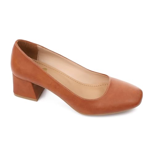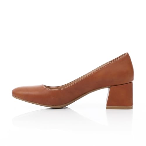Xo Style - اكس او ستايل حذاء بكعب عريض للنساء - بيج داكن مريح وانيق