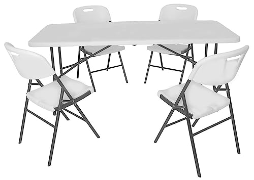 XONE - XONE Resin Table with Folding Legs (183 x 76 x 74 cm) and 4 Folding Chairs (85 x 45 x 50 cm), White