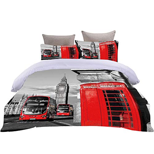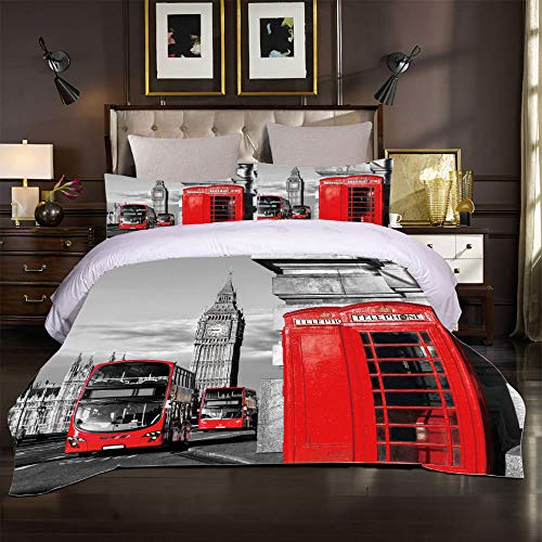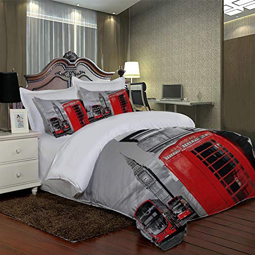 XOYKX - Bedding Printed Duvet Cover Set - Double Size 200X200Cm + 2 Pillowcase London Red Phone Booth Easy Care And Soft Microfibre Duvet Cover With Zipper Closure 3 Piece Quilt Bed Cover