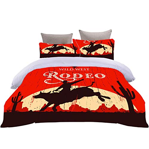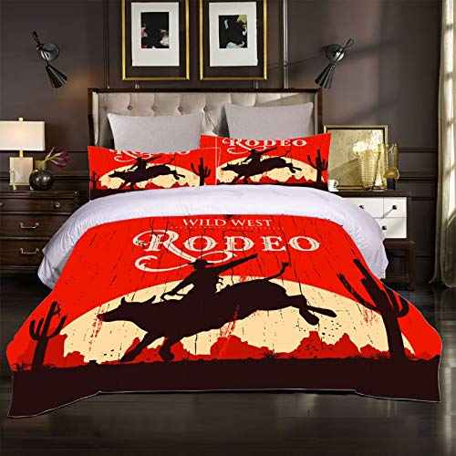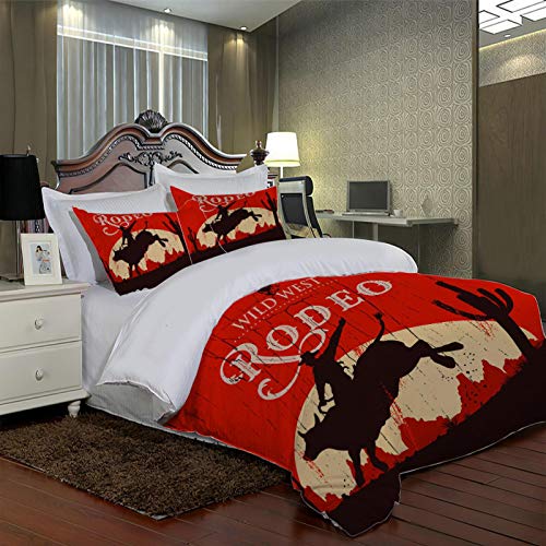 XOYKX - Duvet Cover Super King Bed 260X240Cm With 2 Pillowcases,Western Rodeo 3 Pcs With Zipper Closure + Breathable Quilt Cover - Ultra Soft Hypoallergenic Microfiber Quilt Cover Sets