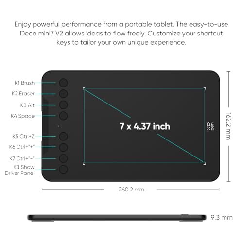 - إبداع انسيابي مع 8 اختصارات: يتميز ديكو ميني 7 V2 الخاص بنا بـ 8 اختصارات قابلة للتخصيص مصممة لمستخدمي اليد اليمنى واليسرى، مما يجعلها أداة مثالية للطلاب والفنانين المبتدئين والهواة. تعمل هذه الاختصارات على تبسيط عمليتك الإبداعية، مما يسمح لك بالوصول بسرعة إلى أدواتك ووظائفك المفضلة، مما يساعدك على التركيز على عملك الفني دون انقطاع