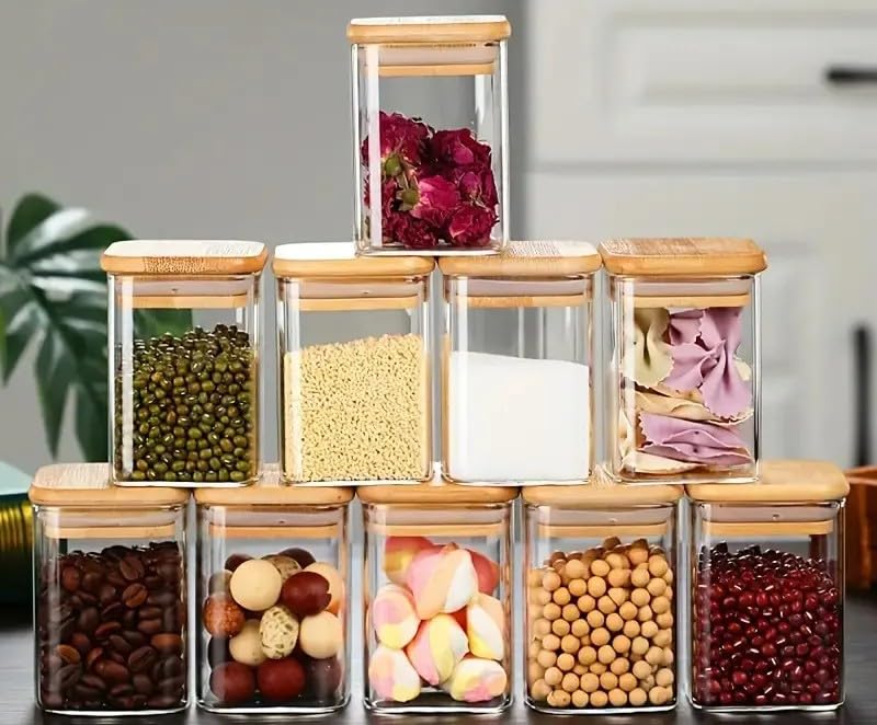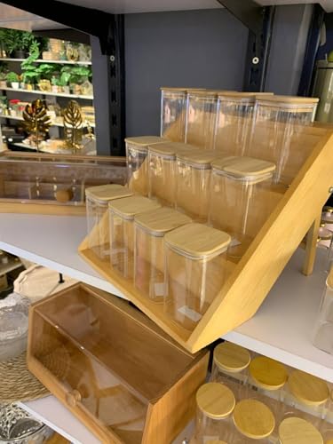 Generic - برطمانات تخزين من اكس بي واي-كيو4، مصنوعة من الزجاج والخشب، مجموعة من 12 قطعة، سعة 250 مل