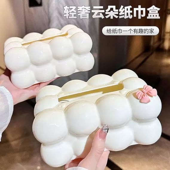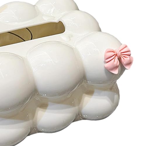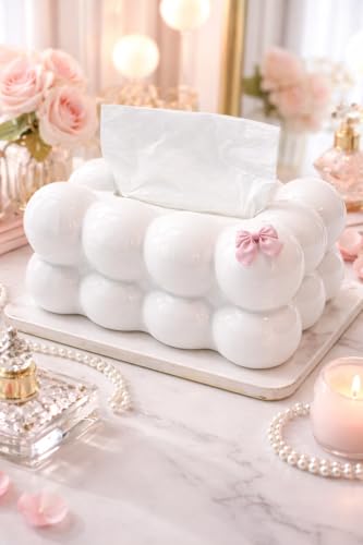 Generic - حامل مناديل عصري، منظم مناديل بتصميم مارشميلو مع فيونكة وردية أنيق على شكل فقاعة، موزع مناديل لغرفة المعيشة والحمام والمكتب للاستخدام الخارجي (أبيض)