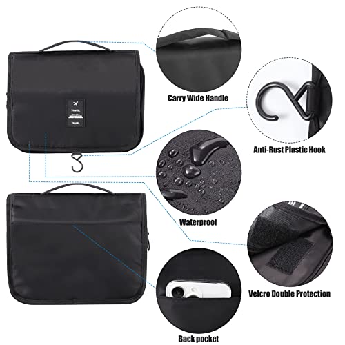 XREE - XREE Hanging Toiletry Bag, Men's Women's Small Cosmetic Bag, Travel, Camping, Wash Bag, Black, for Birthday, Festival, Unisex Gift (24 x 18 x 9 cm), black, Fashion