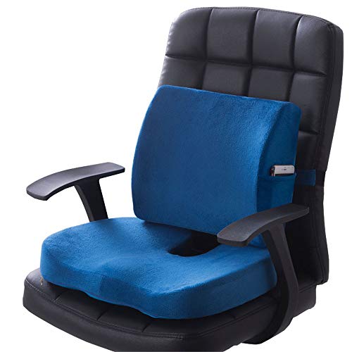 XRTLYH - Seat Cushion Coccyx Orthopedic Memory Foam and Lumbar Support Pillow, Coccyx Orthopedic Comfort Foam Seat Cushion for Lower Back, Tailbone and Sciatica Pain Relief,Set of 2,Blue