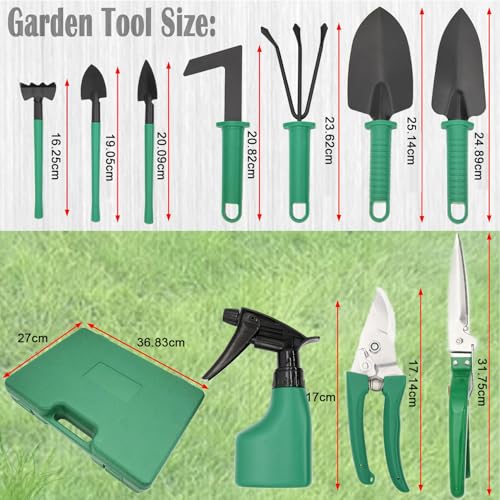 - 🌱【Garden Tools Equipped with a Carrying Case】Plastic material, lightweight and small. for easy storage and classification. Suitable for people of almost all ages. This gardening tool set is an ideal gift for gardening enthusiasts, and comes in a beautiful tool box. this is the ideal gift for mother's day, father's day, thanksgiving day, christmas day and birthday.