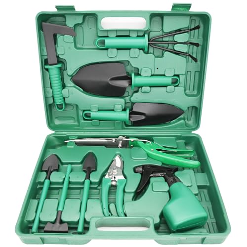 X spring - Xspring Stainless Steel Garden Tool Kit, 10 PCS Gardening Tools Set with Carrying Case,Gardening Hand Tools,Ergonomic Hand Tool, Heavy Duty Gardening Work Set Gardening Gifts for Women Gardener