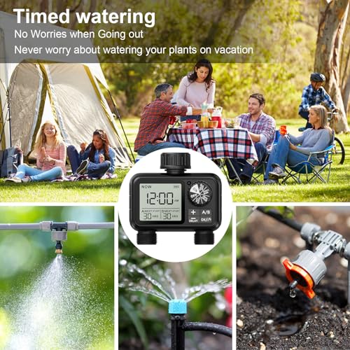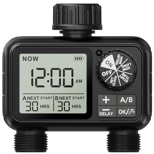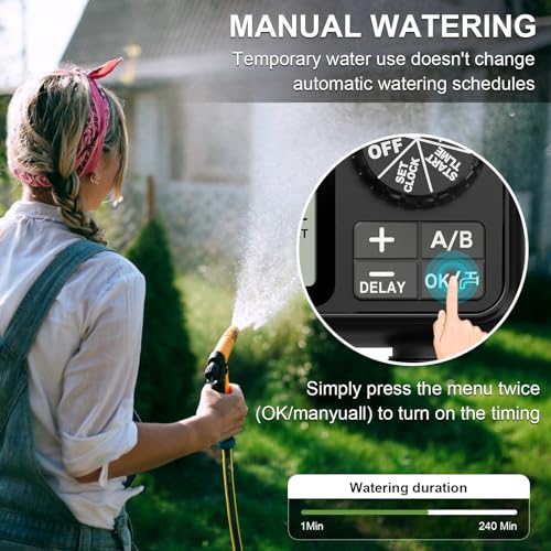 Xtsuen - مؤقت مياه للري من اكستسون، مؤقت خرطوم مع خاصية تأخير المطر/الوضع التلقائي واليدوي، مؤقت مرش للحديقة مقاوم للماء بدرجة IPX5/شاشة LCD كبيرة