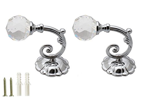 XUMIN - شماعة ستارة برأس كريستال دائرية وخطاف لربط ستائر الشباك والباب ولتعليق الملابس والفوط، اكسسوار للمنزل والمكتب والمدرسة من شومين، زوج واحد (قطعتين)