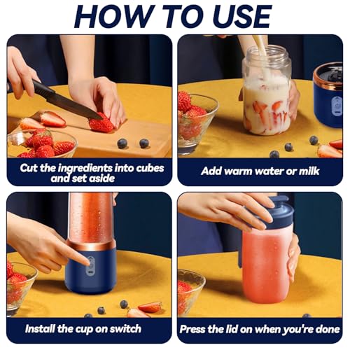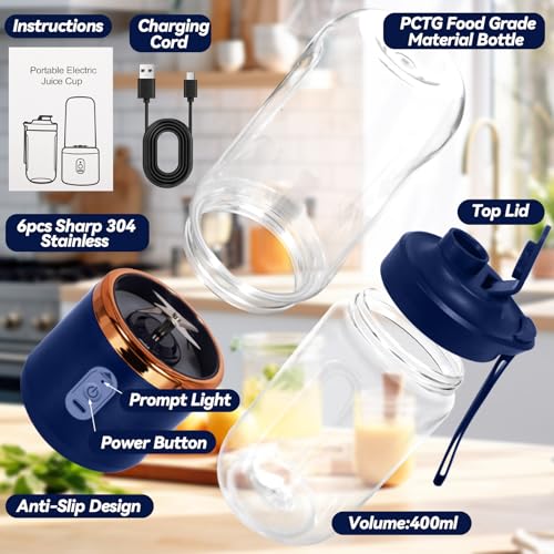XUNIVERS - 400ml Portable Electric Blender, Smoothie Blender, Portable Mini Blender, Brushes and 6 Blenders, Portable Blender, Mini Smoothie Blender for Preparing Milk Shakes