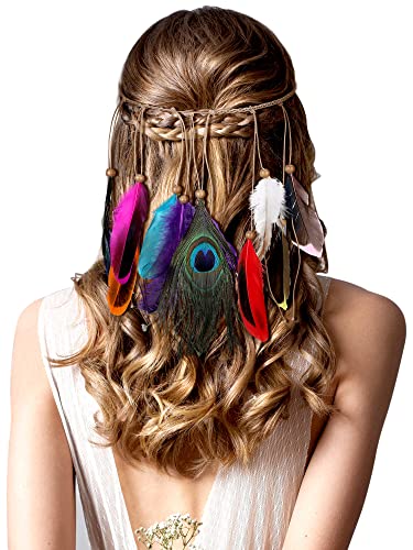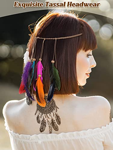 XunYee - شريط للرأس من الريش البوهيمي للمهرجانات، رباط رأس بشراشيب هندي هيبي، اكسسوارات شعر للنساء بتصميم مبتكر من شوني