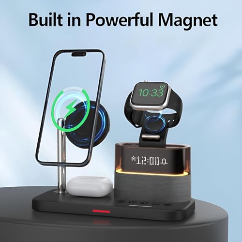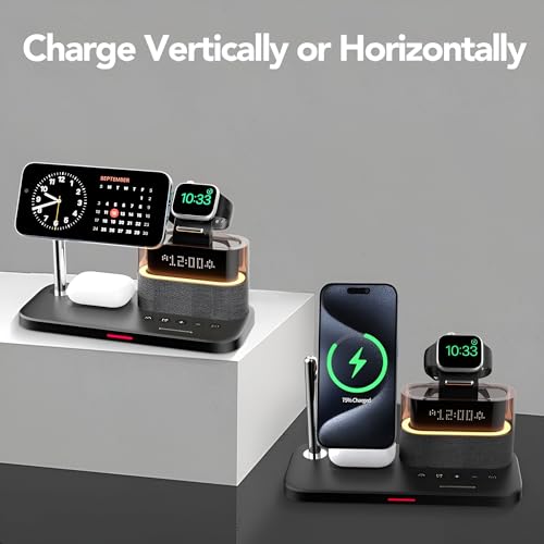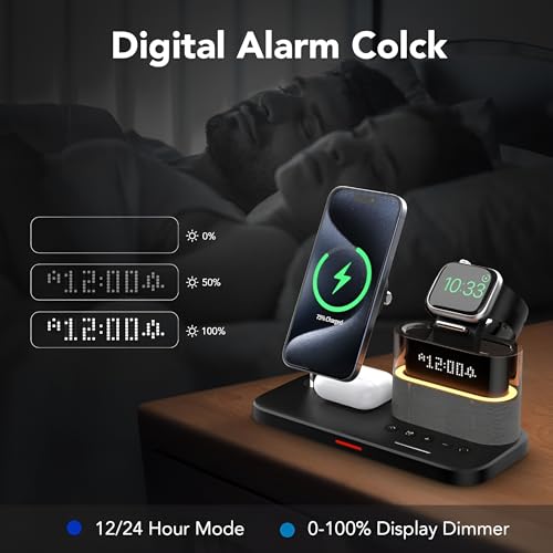 - 【قاعدة شحن لاسلكية 5 في 1】 تم تصميم قاعدة الشحن المغناطيسية اللاسلكية اكس فيرجين لتكون الحل الأمثل لشحن أجهزة ماج سيف الخاصة بك دون متاعب الكابلات المتشابكة. يوفر حامل الهاتف هذا شحنًا سلسًا مع استخدامه كحامل هاتف لسهولة الوصول إلى جهازك. مزودة بساعة رقمية، تتميز قاعدة الشحن بضبط سطوع متعدد المستويات يمكن تخصيصه أو إيقاف تشغيله وفقًا لتفضيلاتك. توفر الشاشة الرقمية الواضحة تنسيقات 12 ساعة و24 ساعة جنبًا إلى جنب مع ساعة منبه. سهل التشغيل ولكنه فعال للغاية، هذا الشاحن يجلب السهولة والتنظيم لحياتك من خلال تبسيط احتياجات الشحن.